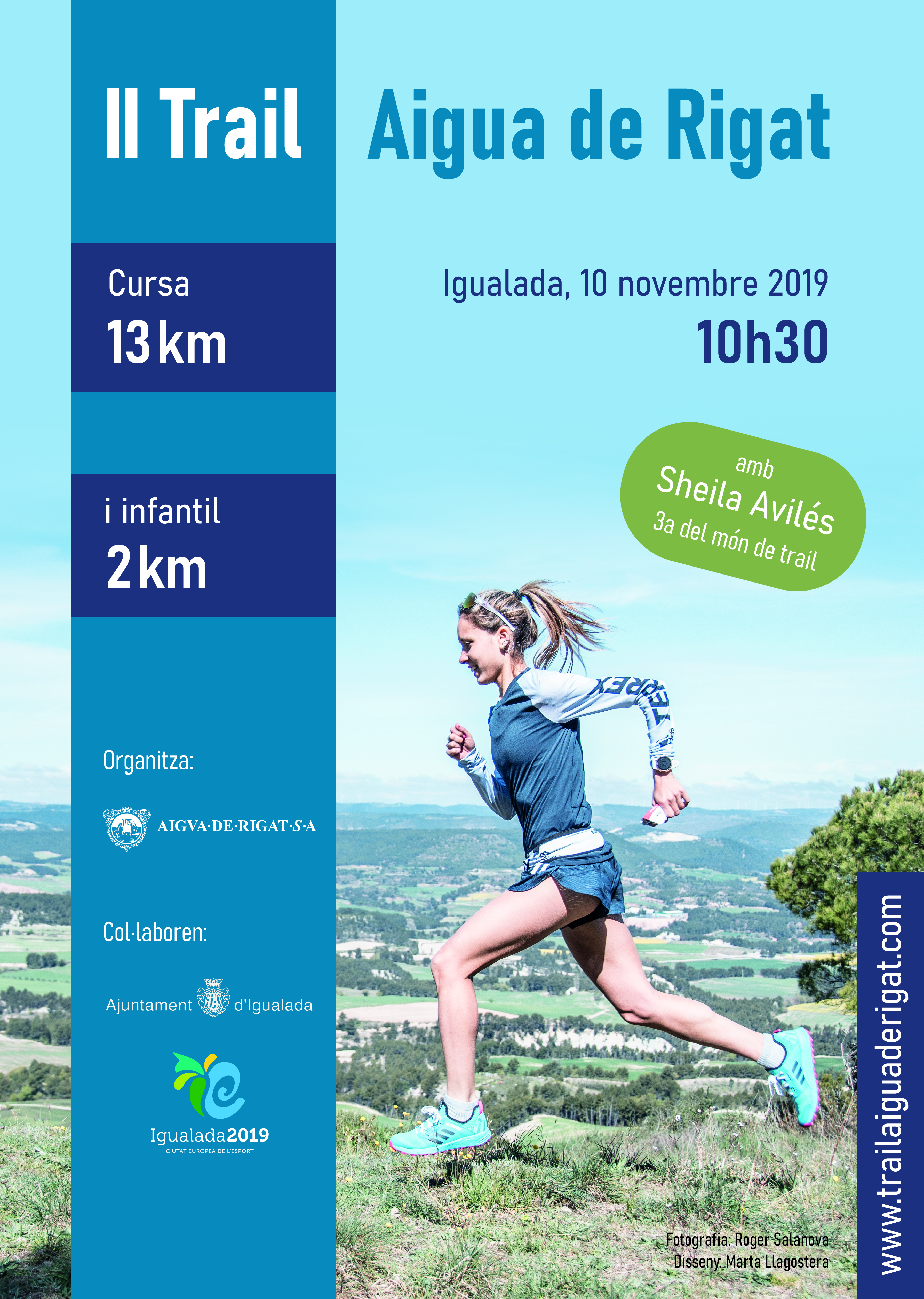 El passat diumenge dia 10 de novembre es va celebrar la II Trail Aigua de Rigat a Igualada, amb sortida i arribada al parc fluvial i amb un recorregut que transcorria també per Santa Margarida de Montbui i Vilanova del Camí. En aquesta segona edició s’ha triplicat la participació de la primera edició amb més de 200 inscrits d’arreu de Catalunya i amb un gran nivell atlètic. L’esdeveniment va comptar amb la presència i suport tècnic de la Sheila Avilès, actual campiona del món de les sèries mundials de curses de muntanya. Malgrat això, no va poder prendre part a la cursa degut als propers compromisos internacionals així com també per minimitzar els risc de lesió.